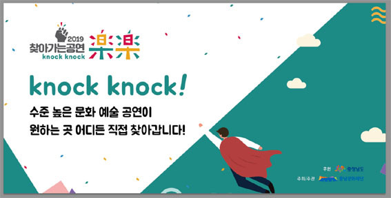¹®È¼Ò¿Ü°èÃþ¿¡ ¹®ÈÇâÀ¯ ±âȸ¸¦ Á¦°øÇÔÀ¸·Î½á Ãæ³²ÀÇ ¹®È º¹Áö¸¦ ½ÇÇöÇϰíÀÚ ÇÏ´Â 2019 ã¾Æ°¡´Â °ø¿¬ ¡®äÅäÅ knock knock¡¯ »ç¾÷Àº ¼Ò¿ÜÁö¿ª?¼Ò¿Ü°èÃþÀ» Á÷Á¢ ¹æ¹®ÇÏ¿© ´Ù¾çÇÑ À帣ÀÇ ¼öÁØ ³ôÀº °ø¿¬À» Á¦°øÇÑ´Ù.