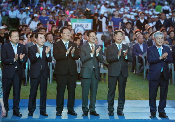 | | ¡è¡è ¡ãÂü¼®³»ºó°ú ÇÔ²² ÀÔÀåÇÏ´Â ¼±¼öµéÀ» ȯ¿µÇϰí ÀÖ´Â ¾ç½ÂÁ¶ Áö»ç. <»çÁøÁ¦°ø=Ãæ³²µµ> | ¨Ï ¿Â¾ç½Å¹® | |