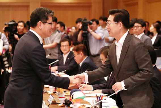 ¾ç Áö»ç´Â 7¿ù 24ÀÏ ºÎ»ê ´©¸®¸¶·ç ¿¡ÀÌÆÑÇϿ콺¿¡¼ ¿¸° ¹®ÀçÀÎ ´ëÅë·É-½Ã¡¤µµÁö»ç °£´ãȸ¿¡ Âü¼®Çß´Ù.