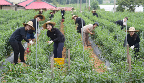 °°Àº ½Ã°¢, ģȯ°æ³ó¹ýÀ¸·Î °íÃ߸¦ Àç¹èÇϰí ÀÖ´Â ÀÚ¿¬µå¸² »ý»êÀÚ ¸í¿µ¼÷(¿©, 53¼¼)¾¾ ³ó°¡¿¡¼´Â °íÃß¼öÈ®ÀÌ ÇÑâ ÁøÇàµÇ°í ÀÖ¾ú´Ù