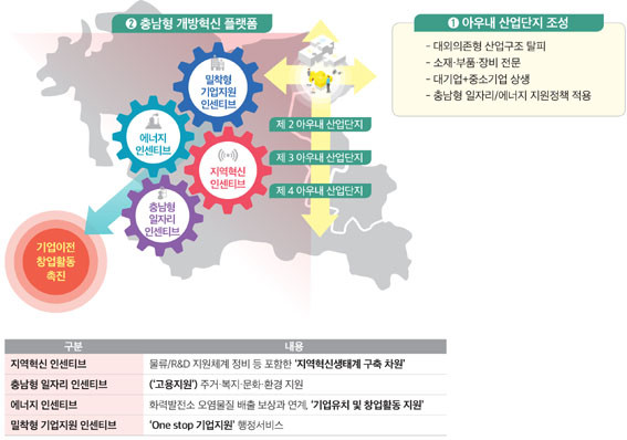 | | ¡è¡è ¡ã<±×¸² 2> ¡®¾Æ¿ì³» »ê¾÷´ÜÁö¡¯¿Í Ãæ³²Çü °³¹æÇõ½Å Ç÷§Æû(¾È) <»çÁøÁ¦°ø=Ãæ³²¿¬±¸¿ø> | ¨Ï ¿Â¾ç½Å¹® | | ¾Æ¿ï·¯ ¡®¾Æ¿ì³» »ê¾÷´ÜÁö¡¯ ¼º°øÀ» À§ÇØ Áö¿ªÇõ½Å Àμ¾Æ¼ºê, Ãæ³²Çü ÀÏÀÚ¸® Àμ¾Æ¼ºê, ¿¡³ÊÁö Àμ¾Æ¼ºê, ¹ÐÂøÇü ±â¾÷Áö¿ø Àμ¾Æ¼ºê µîÀÇ ÀÔüÀûÀÎ Á¤Ã¥Áö¿øÀÌ ÇÊ¿äÇÏ´Ù°í º¸¾Ò´Ù. <±×¸² 2>
