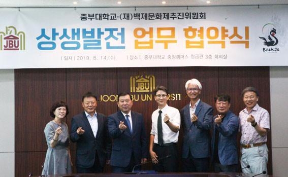 ¿À¹è±Ù ¹éÁ¦¹®ÈÁ¦ÃßÁøÀ§¿øÈ¸ À§¿øÀå Á÷¹«´ëÇà(»ç¹«Ã³Àå)°ú ÀÌÁ¤¿ ÁߺδëÇб³ ºÎÃÑÀåÀº À̳¯ ¿ÀÀü 11½Ã Áߺδë ÃæÃ»Ä·ÆÛ½º Á¤±Ý°ü¿¡¼ ¾÷¹«Çù¾à¼¿¡ ¼¸íÇϰí, ±ä¹ÐÇÑ Çù·Â ü°è¸¦ ±¸ÃàÇØ³ª°¥ °ÍÀ» ´ÙÁüÇß´Ù.