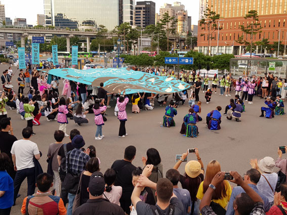 À̳¯ Ç÷¡½Ã¸÷¿¡ ¾Õ¼ Ÿ¾Ç±×·ì ¡®ºí·ÎÄÚ Ç÷£Å¸¡¯°¡ ¼¿ï¿ª ±¤Àå ÀÏ¿øÀ» ¼øÈ¸ÇÏ¸ç Æ¯À¯ÀÇ ½Ó¹Ù¿Í ·¹°Ô ¸®µëÀ¸·Î ÇàÀεéÀÇ À̸ñÀ» ²ø¾î ¸ð¾Ò°í, ¹éÁ¦¹®ÈÁ¦ÃßÁøÀ§¿øÈ¸ Á÷¿øµéÀº Çà»çÀå ÁÖÀ§¿¡¼ ¸®Çø´°ú ±â³äǰ, È«º¸À̺¥Æ® µîÀ» ½Ç½ÃÇØ Å« È£ÀÀÀ» ¾ò¾ú´Ù.