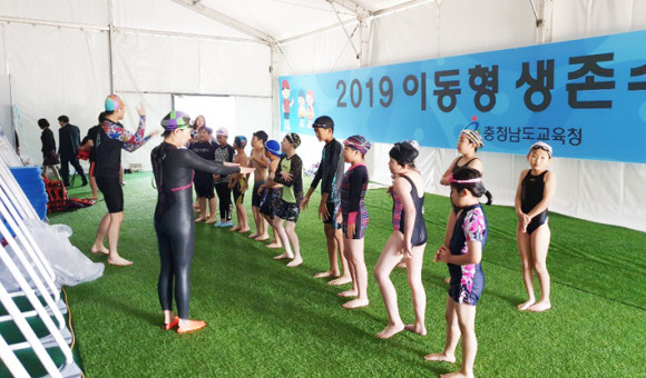 ÁÖº¯¿¡ ¼ö¿µÀåÀÌ ¾ø´Â Çб³¿¡¼ ÀÌ·ïÁö´Â À̵¿Çü »ýÁ¸¼ö¿µ ±³À°Àº Àü¹®¾÷ü°¡ °£ÀÌ ¼ö¿µ½Ã¼³À» Çб³¿¡ ¼³Ä¡Çϰí, Àü¹® °»ç°¡ ±³À°À» ½Ç½ÃÇÑ´Ù. ¾ÇõÈÄ¿¡µµ ¾ÈÀüÇÑ ±³À°ÀÌ µÇµµ·Ï ÅÙÆ® ³» ¼ö¿µÀå, »þ¿öÀå°ú Å»ÀǽÇÀ» ¹èÄ¡Çϰí, ±³À°°»ç 2ÀÎ, ¾ÈÀüÁöµµ¿ä¿ø 1ÀÎÀ» ¹èÄ¡ÇØ ±³À°ÀÇ ÁúÀ» ³ô¿´´Ù.