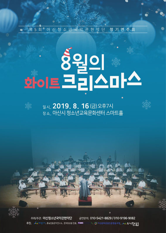 ¾Æ»êû¼Ò³â±¹¾Ç°üÇö¾Ç´ÜÀÇ Á¦5ȸ Á¤±â¿¬ÁÖȸ°¡ ¹«´õ¿î ¿©¸§ ¡®8¿ùÀÇ ÈÀÌÆ®Å©¸®½º¸¶½º¡¯¶ó´Â ÁÖÁ¦·Î ¿À´Â 8¿ù 16ÀÏ ¿ÀÈÄ 7½Ã ¾Æ»ê½Ã û¼Ò³â±³À°¹®È¼¾ÅÍ ½º¸¶Æ®È¦¿¡¼ ¿¸°´Ù.