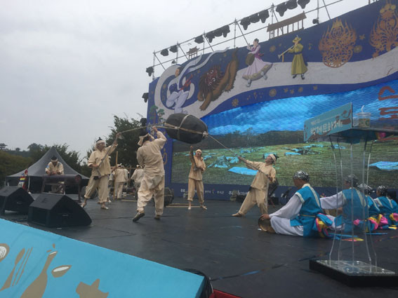 10¿ù 1ÀÏ °øÁÖ Çà»çÀå ÁÖ¹«´ë¿¡¼´Â ¡â´çÁø½ÃÀÇ ¡®Çѱ¹¹®È¿¹¼úÇùµ¿Á¶ÇÕ¡¯(±¸¸§Àº °¡¶ôÀ» Ÿ°í) ¡â¾Æ»ê½ÃÀÇ ¡®¿Â»õ¹Ì·Î¿¹¼ú´Ü¡¯(¹éÁ¦¹®È Èï¿¡ ¹°µé´Ù) ¡â°è·æ½ÃÀÇ ¡®°è·æ½Ã¾ö»ç¿¹¼ú´Ü¡¯(½Åµµ¾È) ¡â¼»ê½ÃÀÇ ¡®´é°³³»Æ÷¿¹¼ú´Ü¡¯(´é°³¹éÁ¦»ç½ÅÇà·Ä µîÀÌ ¸ÚÁø ¹«´ë·Î ÃàÁ¦ ºÐÀ§±â¸¦ ÇѲ¯ °íÁ¶½ÃÄ×´Ù.