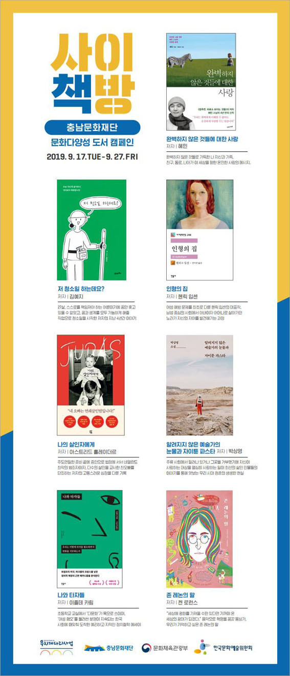 ¿ÃÇØ 2ȸÂ÷ ÁøÇàµÇ´Â µµ¼ Ä·ÆäÀÎ ¡®»çÀÌÃ¥¹æ¡¯Àº Ãæ³² ³» 10°³ µµ¼°ü ¹× ½Ã¹Î Âü¿©°ø°£¿¡¼ ÁøÇàµÇ¸ç, ¼±Á¤µÈ 7±ÇÀÇ µµ¼¸¦ ÀÐ°í ¼º ¼Ò¼öÀÚ¿Í ÀαÇ, Á¨´õ µî ¹®È´Ù¾ç¼º°ú °ü·ÃµÈ À̽´¸¦ µ¹ÀÌÄÑ º¼ ¼ö ÀÖ´Â °è±â¸¦ ¸¶·ÃÇϱâ À§ÇØ ÁøÇàµÇ´Â ¹®È Çà»ç´Ù.