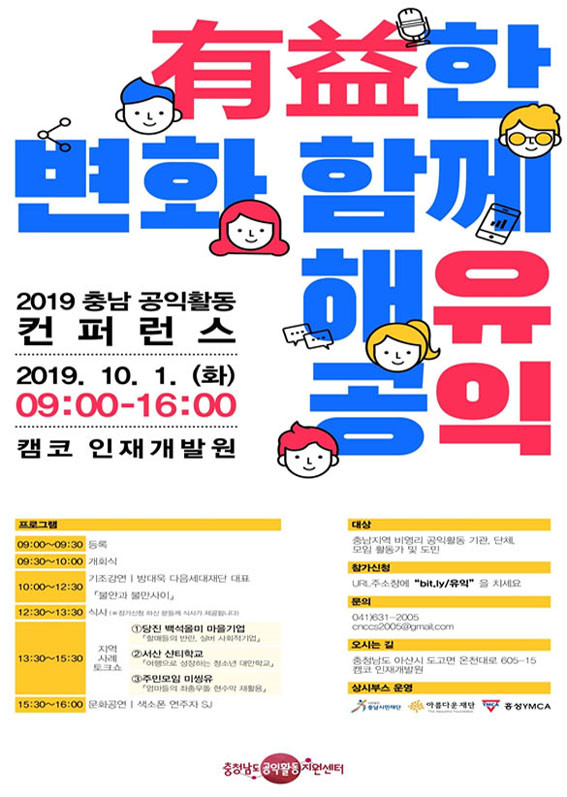 º» ÄÁÆÛ·±½º´Â °øÀÍȰµ¿¿¡ °ü½ÉÀÌ ÀÖ´Ù¸é ´©±¸³ª ½Åû°¡´ÉÇϸç, Á¢¼ö´Â ÀÎÅÍ³Ý °Ë»öâ¿¡ bit.ly/À¯ÀÍ, ȤÀº Ãæ³²°øÀÍȰµ¿Áö¿ø¼¾ÅÍ(https://cncivil.org/) ÇØ´ç °øÁö±ÛÀ» Âü°íÇÏ¸é µÈ´Ù.