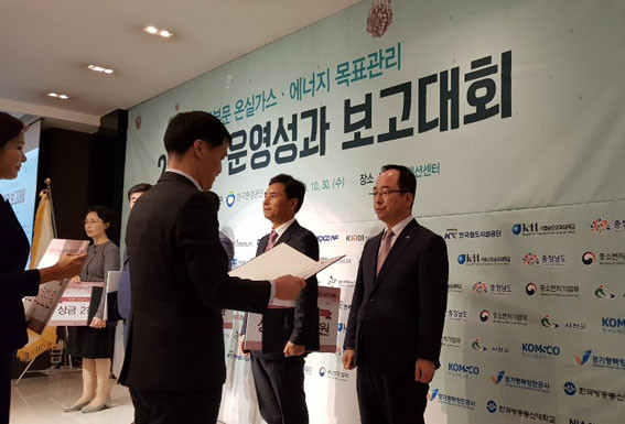 µµ´Â 10¿ù 30ÀÏ ¼¿ï KWÄÁº¥¼Ç¼¾ÅÍ¿¡¼ ¿¸° ¡®2018³â °ø°øºÎ¹® ¿Â½Ç°¡½º ¿¡³ÊÁö ¸ñÇ¥°ü¸® ¿î¿µ¼º°ú º¸°í´ëȸ¡¯¿¡¼ ȯ°æºÎ ±â°ü ǥâ°ú »ó±Ý 2õ¸¸ ¿øÀ» ¼ö»óÇß´Ù°í ¹àÇû´Ù.