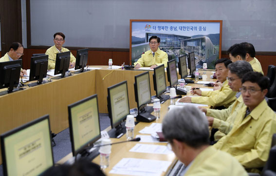 ¾ç½ÂÁ¶ Ãæ³²µµÁö»ç´Â 10¿ù 4ÀÏ Áß¾Ó Àç³­¾ÈÀü»óȲ½Ç°ú µµ Àç³­¾ÈÀü»óȲ½Ç µî¿¡¼­ ¿µ»óÀ¸·Î ÁøÇàµÈ ÅÂdz ¡®¹ÌŹ¡¯ ÇÇÇØ ¹× ¾ÆÇÁ¸®Ä«µÅÁö¿­º´ ¹æ¿ª ´ëÃ¥ Á¡°ËȸÀÇ¿¡ Âü¼®Çß´Ù.