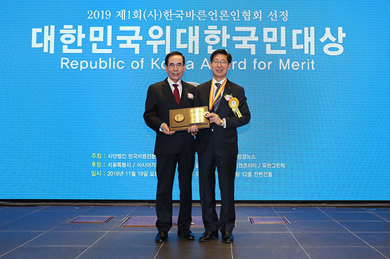 Çѱ¹¹Ù¸¥¾ð·ÐÀÎÇùȸ´Â À̳¯ ±¹¹ÎÀϺ¸ ÄÁº¥¼Ç¼¾ÅÍ¿¡¼ ½Ã»ó½ÄÀ» ¿°í, ¾ç Áö»ç¿¡°Ô °ø·ÎÆÐ¸¦ Àü´ÞÇß´Ù.