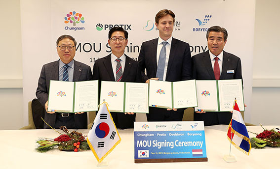 ¾ç Áö»ç´Â À̳¯ ³×´ú¶õµå º£¸£Çå ¿É Á»¿¡ À§Ä¡ÇÑ ÇÁ·Îƽ½º º»»ç¿¡¼ Ű½º ¾ÆÃ÷ ÇÁ·Îƽ½º CEO, ±è½Â·Ä µÎºñ¿ø ȸÀå, ±èµ¿ÀÏ º¸·É½ÃÀå µî°ú ÅõÀÚÇù¾à(MOU)À» ü°áÇß´Ù.