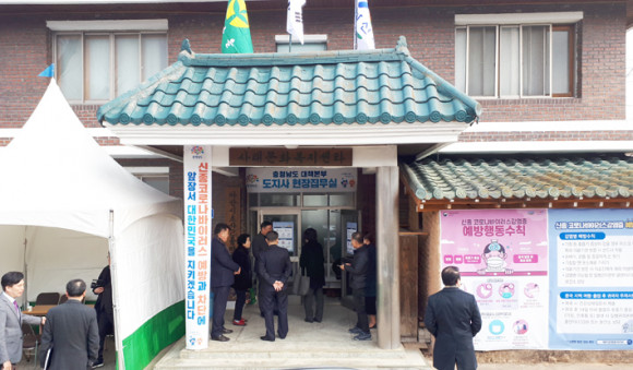 ¾ç Áö»çÀÇ ÇöÀåÁý¹«½ÇÀº Áö³´Þ 31ÀÏ ¡®½ÅÁ¾ Äڷγª¹ÙÀÌ·¯½º °ü·Ã ±¹¹Î°ú µµ¹Îµé²² µå¸®´Â ¸»¾¸¡¯ ¹ßÇ¥¿Í ÇÔ²² ÃÊ»ç2Åë ¸¶À»È¸°ü 1Ãþ¿¡, ¼÷¼Ò´Â °æÂûÀÎÀç°³¹ß¿ø Á¤¹®¿¡¼ 200m°¡·® ¶³¾îÁø °÷¿¡ ¸¶·ÃÇßÀ¸¸ç, ¼÷¼Ò ¾Õ¿¡´Â µµ ÇöÀå´ëÃ¥º»ºÎµµ ¼³Ä¡Çß´Ù. ¼÷¼Ò¿¡¼´Â ¾ç Áö»ç ºÎºÎ°¡ »ýȰ ÁßÀ̸ç, ½Ä»ç´Â Àα٠½Ä´çÀ» ÀÌ¿ëÇϰí ÀÖ´Ù.