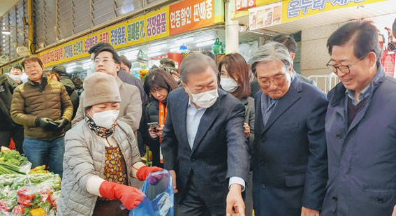 ÁֹΠ°£´ãȸ¿¡ ÀÌ¾î ¹® ´ëÅë·ÉÀº ¾ç Áö»ç¿Í ÇÔ²² ¿Â¾ç¿ÂõÀüÅë½ÃÀåÀ¸·Î À̵¿, ½ÃÀåÀ» µ¹¾Æº¸¸ç »óÀεéÀ» °Ý·ÁÇß´Ù.