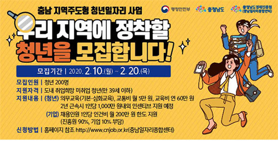 20ÀϱîÁö ¡®Ãæ³²Çü Áö¿ª±ÕÇü¹ßÀü û³â°í¿ë»ç¾÷ û³â 200¸í ´ë»ó