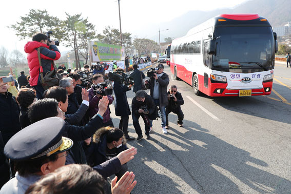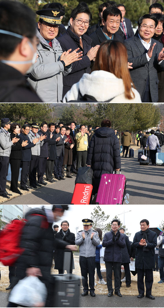 ¾ç Áö»ç µîÀº ¶Ç °æÂû°³¹ß¿ø Á¤¹® ¾ÕÀ¸·Î À̵¿, ±³¹Î ȯ¼ÛÀ» À§ÇØ ³ª¿Â ¾Æ»ê½Ã¹Î µî°ú ÇÔ²² ¼ÕÀ» Èçµé¸ç ¹ö½º¸¦ Ÿ°í À̵¿ÇÏ´Â ±³¹Îµé¿¡°Ô ´Ù½Ã ÇÑ ¹ø ÃàÇÏÀÇ ¶æÀ» ÀüÇß´Ù.